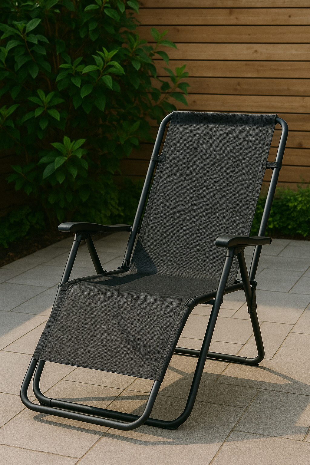 Hopfällbar solstol i vädertåligt material med justerbart ryggstöd. Perfekt för både altan och strand.